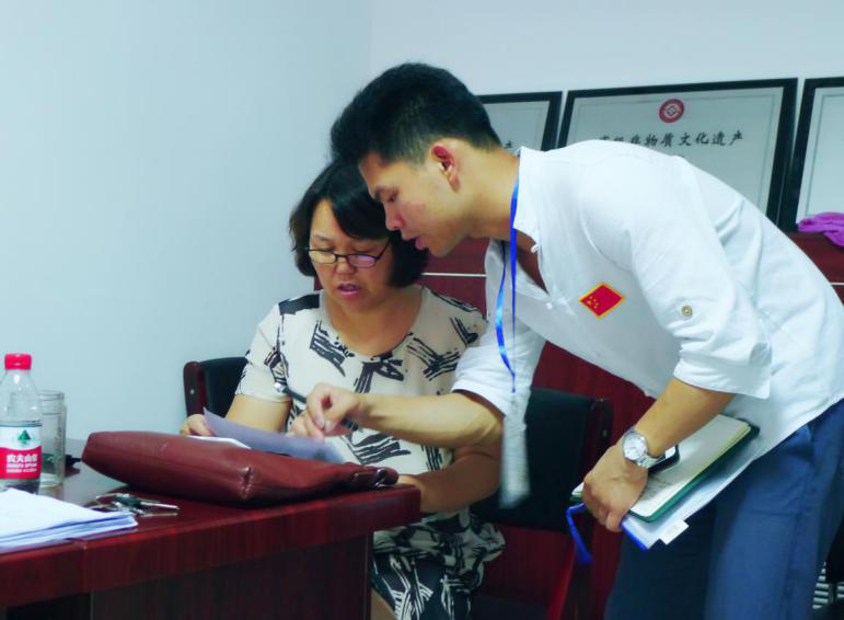 队长蔡传喜(右)带领队员在平乡县非遗中心调研