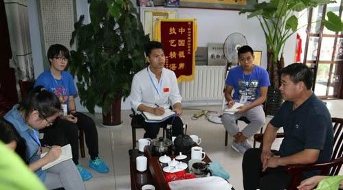 | 活动小分队队长蔡传喜(中)带领队员在衡水国家级非遗戳脚传习所调研 |